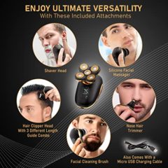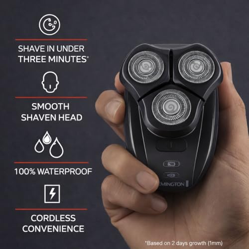 Click for More Images 3 DUAL-TRACK ROTARY HEADS FOR FAST, CLOSE SHAVES: Upgrade your routine with a powerful electric head shaver for men featuring 3 dual-track rotary blades. Designed for bald head shaving, the stainless steel blades glide...