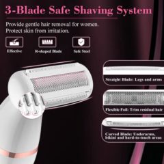 Click for More Images independently floating flexible pivoting heads glide effortlessly to trace the individual contours of legs, arms, under the arms and bikini areaswomen's electric shaver with 3 ultra-sharp blades and ultra-thin foil follows...