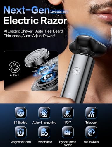 Click for More Images 5D Floating Head & Hypoallergenic Blades?Our electric razor for men features contour-hugging 5D flex blades that adapt to jawlines and neck curves. Hypoallergenic stainless steel visibly reduces irritation for sensitive...