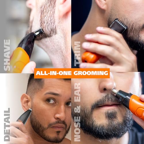 Click for More Images Complete All-In-One Grooming Kit for Men – Tackle every grooming need with one powerful tool. This versatile hybrid electric razor for men includes 4 interchangeable heads: a self-sharpening beard trimmer, precision detail...