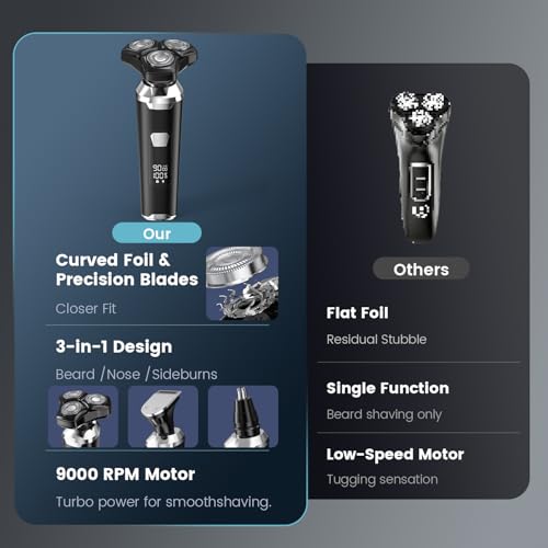 Click for More Images Advanced 4D Flex Technology: Experience professional grooming with an Electric Razor for Men featuring 4D Flex Rotary Blades that adjust to facial contours for a close, irritation-free shave. Precision blades capture medium...