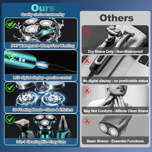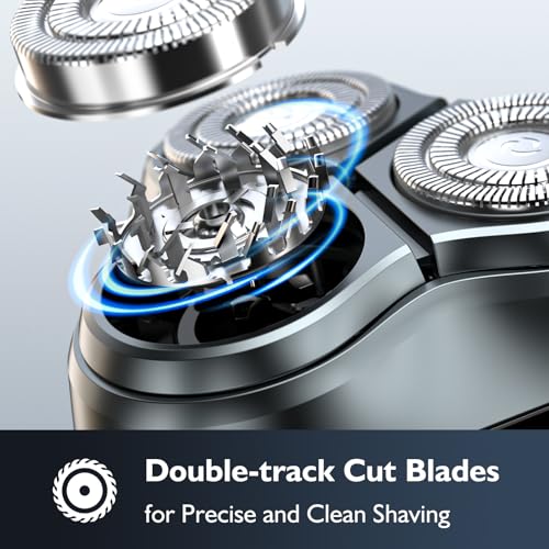 Click for More Images DUAL SHARP BLADES FOR FAST & CLOSE SHAVING: Our mens electric razors for shaving face are equipped with an ultra-thin, hypoallergenic double-layer titanium blade net, which can ensure the best close shave while minimizing...