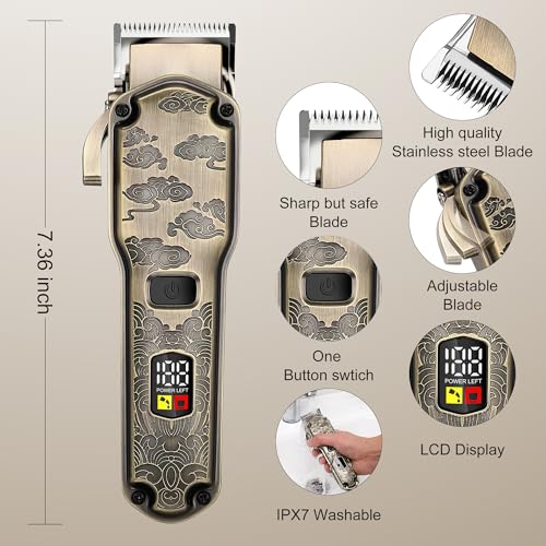 Click for More Images ?Barber-Grade Cutting Performance?Our self-sharpening ceramic blades outperform traditional steel blades, maintaining much sharper edges that effortlessly glide through thick/coarse hair without painful pulling. Naturally...