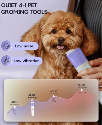 Click for More Images ?Low Noise?This dog clipper features a powerful motor with low-noise technology, operating at less than 50db. It protects your pet from stress and fear during grooming, so they won't be afraid of haircuts anymore. You don't...