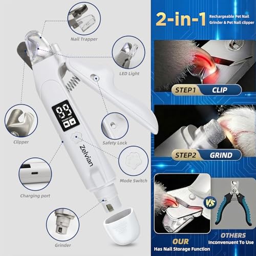 Click for More Images ?2 In 1 Dog Nail Clippers & Grinder?This 2-in-1 cat and dog nail trimmers combines a clipper and grinder, suitable for large, medium, and small dogs and cats. the convenient design saves space and reduces clutter, allowing...