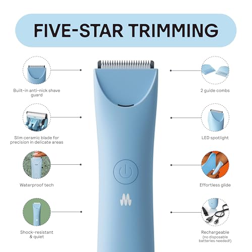 MERIDIAN Slimmer Trimmer – Electric Razor for Women, Bikini Line & Pubic Hair Trimmer, Rechargeable & Waterproof, Painless, Flawless Shave for Sensitive Skin, Gentle, Quiet & Travel-Friendly, Sky